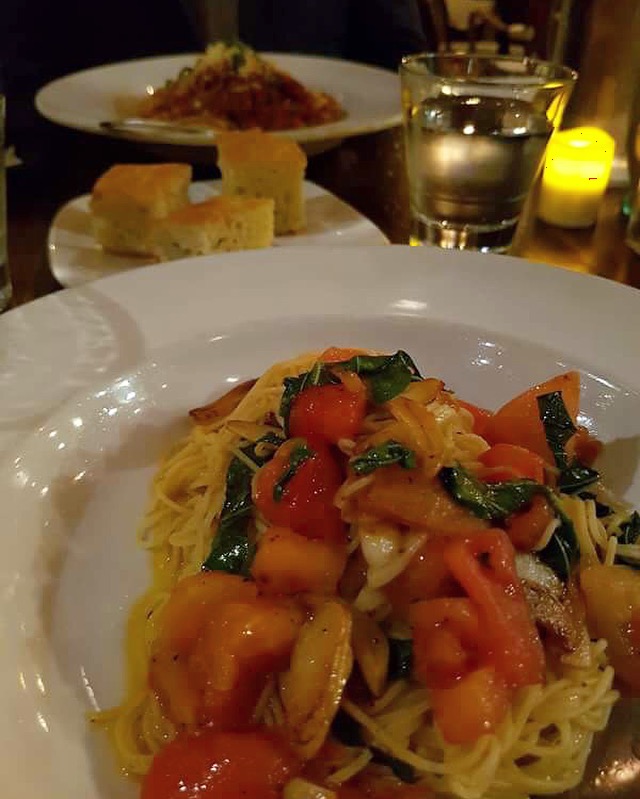 Åh, pasta med basilika, en massa vitlök och tomater…mmm! Det är vad jag kallar gudomligt. Vi hittade en otroligt charmig, italiensk restaurang. Efter tung mat on the road var det skönt att sätta tänderna i något som inte serveras med pommes frites.